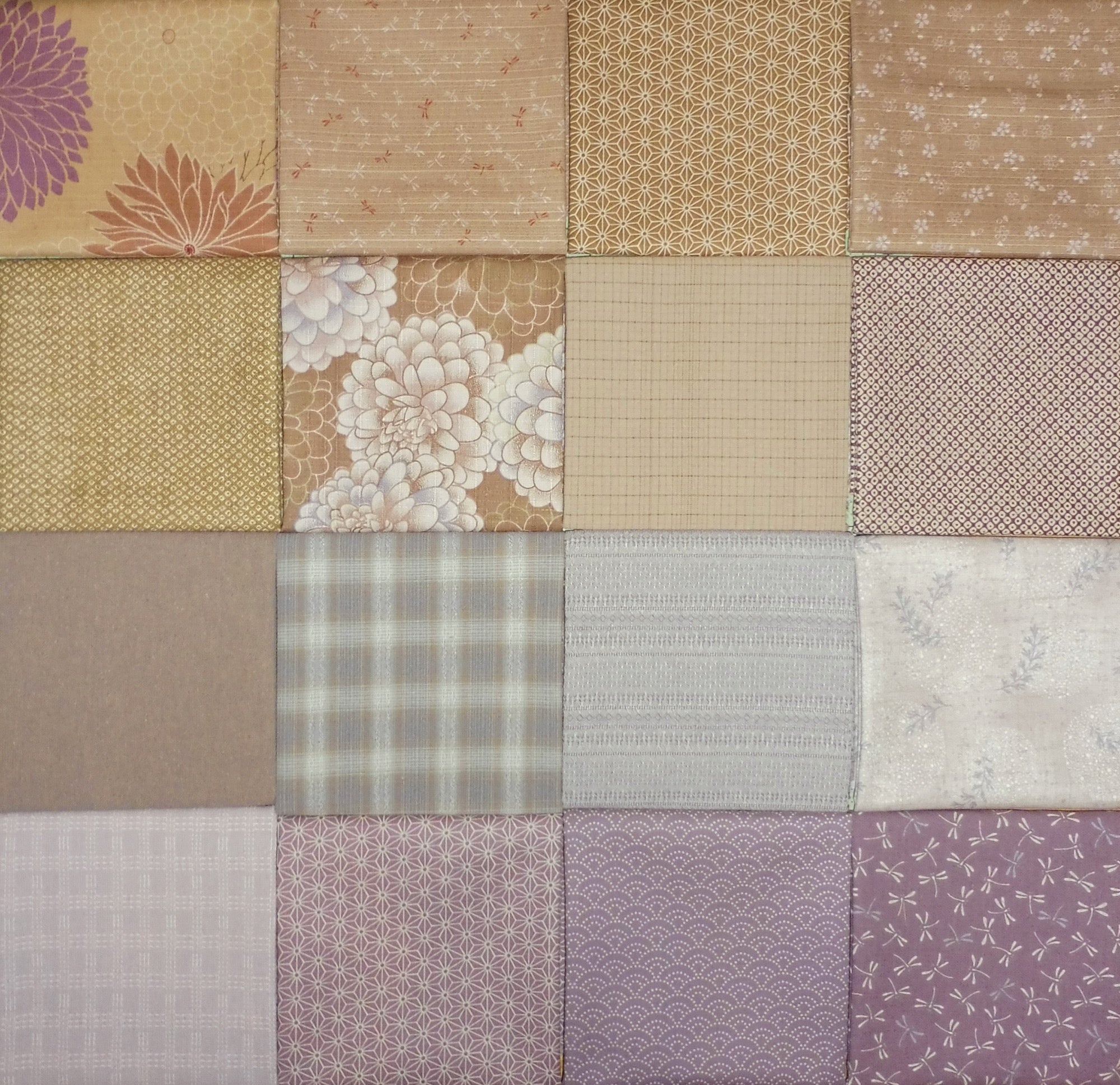 100% cotton. Fabrics are a combination of regular weight quilting prints from Sevenberry, Handworks and Yoko Saito's Centenary collection and textured yarn dyes from Cosmo, Handworks and Textile Pantry.